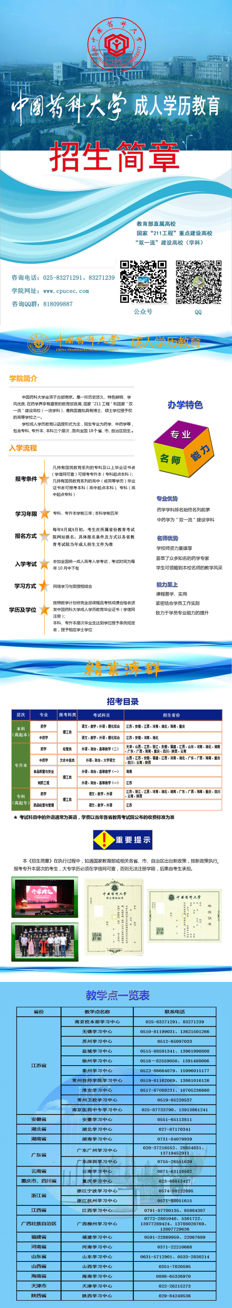 2018年中国药科大学成人学历教育招生简章