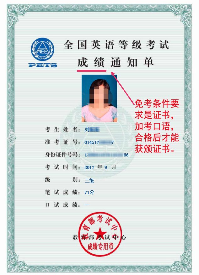 《教育部关于开展现代程教育试点高校网络教育部分公共基础课全国统一考试试点工作的实施意见》(教高[2004]5号)文件中,对于免考的规定,第三条为:除英语专业外,获得全国公共英语等级考试(PETS)三级或以上级别证书者,可免考“大学英语”。根据文件精神,除英语专业外,必须获得合格证书者,才可免考大学英语。