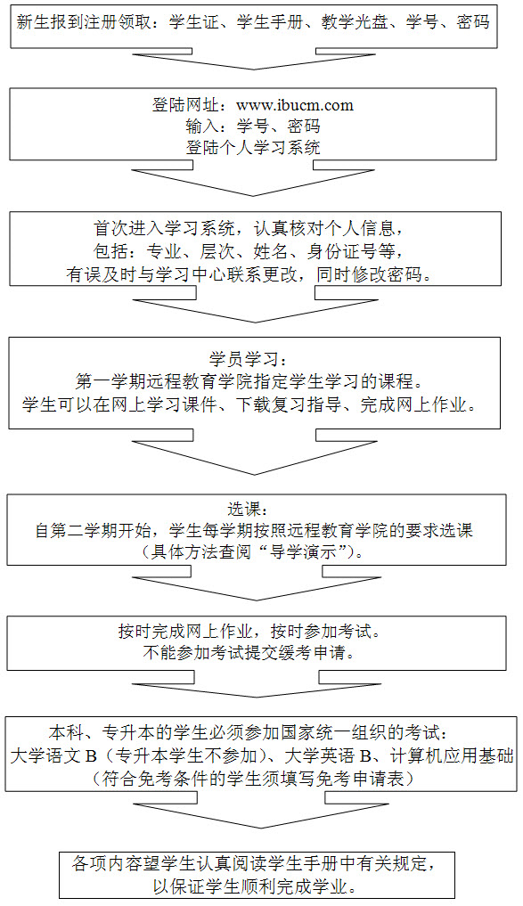 北京中医药大学远程教育学院学生学习流程