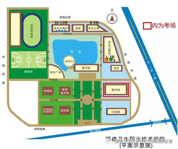 8.各位考试每场考试考完后,请带好自己物品离开考场区域,请勿在考场周围逗留,影响他人考试。考生可到教学楼101-104、201-208教室进行复习。