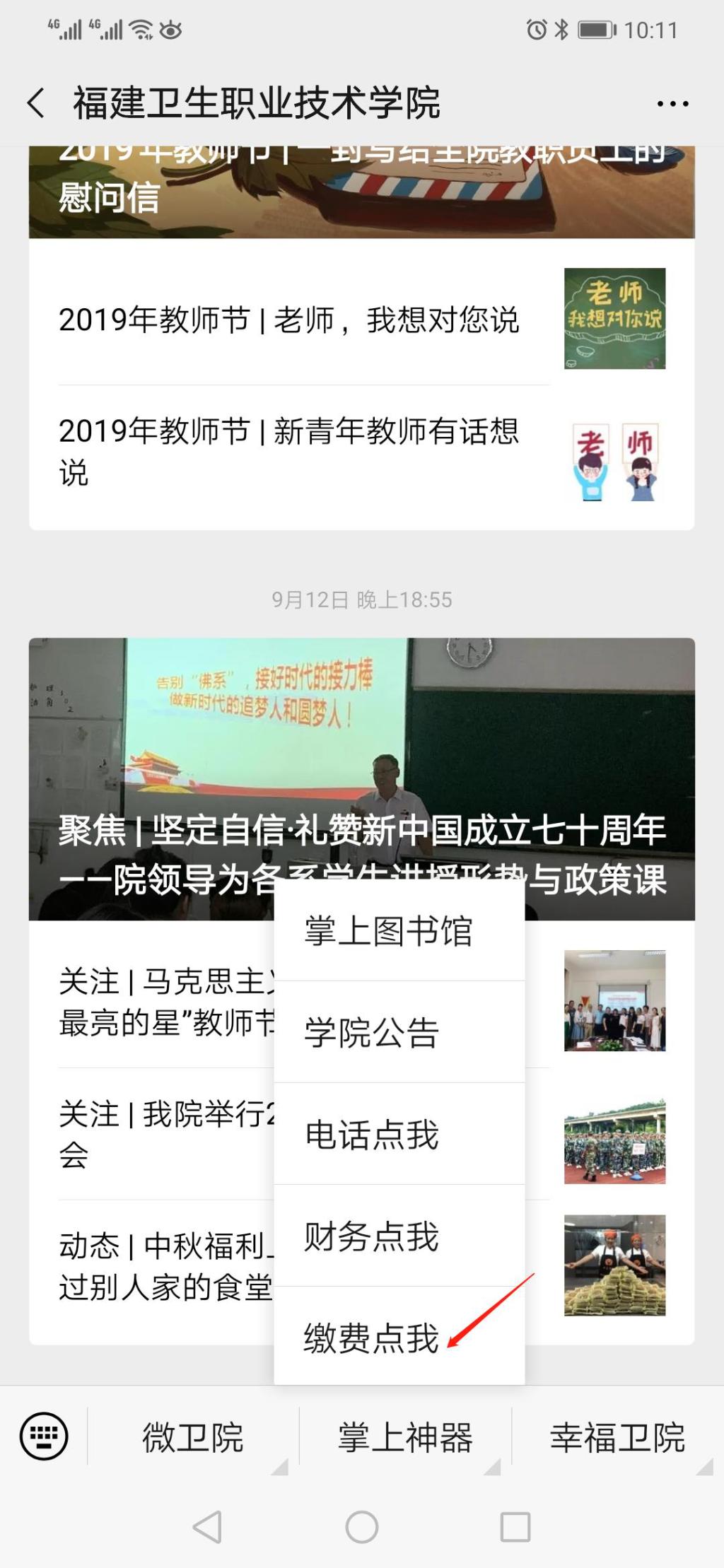 步骤1 关注“开云在线登录app入口”微信公众号后,点击下方“掌上神器”后再点击“缴费点我”。