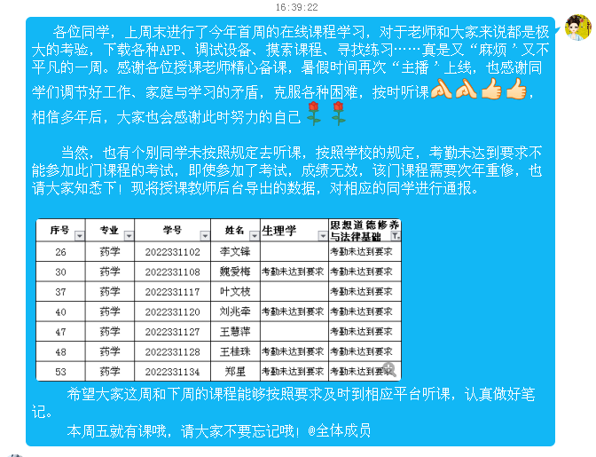 老师们根据所授课程和成人教育教学的特点制定在线教学计划,精心备课并做好各项预案,学生们认真听讲、记录笔记;线上师生互动答疑热烈,交流畅快。面对大规模线上教学,师生从接触到探索至熟悉再到灵活运用,需要一个逐步的过程。为更好融合网上 “教”与“学”,及时链接教学过程中遇到的困难,通过班级QQ群、微信群、微信公众号等平台,多渠道采集学生网上学习过程中反馈的问题,组建师生之间“教”“学”融合的桥梁。这段时期里,继续教育中心组织督导人员对线上课堂的教学进行检查,通过旁听课程、教师交流等方式,了解线上教学的情况,适时调整工作内容,进一步提升教与学的效果。