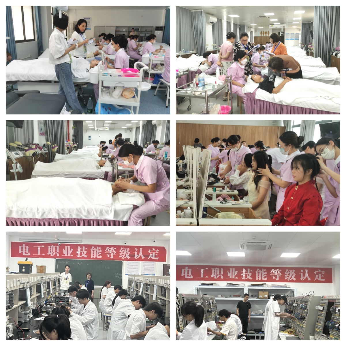 6月15至16日,开云顺利完成2024年美容师、电工职业技能等级认定工作,来自校内的170名学生分别参加高级工认定考核。