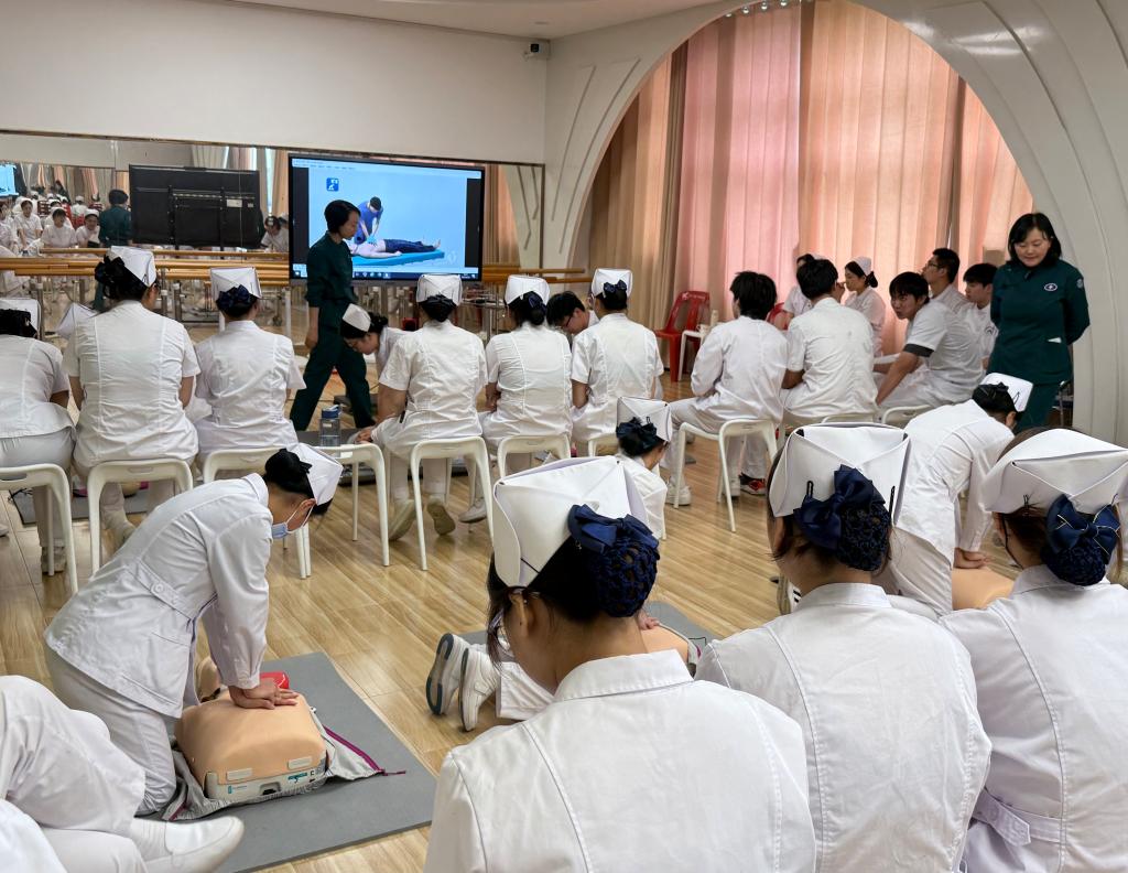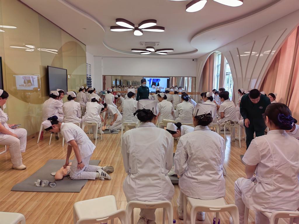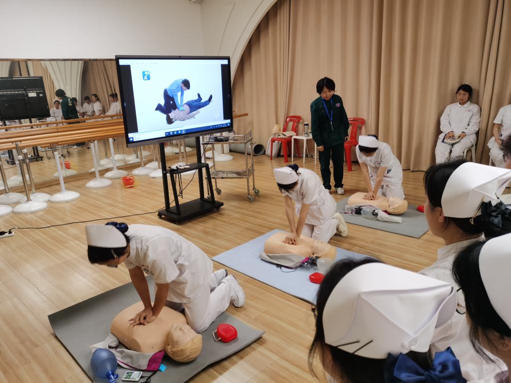 名师工作室引领,打造急救教育新标杆。教育部职业教育名师培养对象洪霞教授主持的名师工作室成为项目核心引擎。在AHA标准教材和标准化教学的基础上,名师工作室整合教学名师、金牌工匠、AHA认证导师,将AHA的BLS(基础生命支持)课程转化为动态教学场景。救护演练100%还原急救现场场景,每一步都有详细解说,实现按压深度、通气频率等操作参数的实时纠错。培训过程中,导师们孜孜不倦,倾囊相授;学员们专心致志,收获颇丰。
