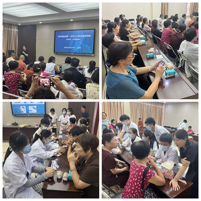 活动现场,师生团队结合老年群体的健康需求与安全痛点,将服务分为“口腔健康守护”“急救技能培训”两大核心板块,让专业知识以贴近生活的方式触达老年学员。