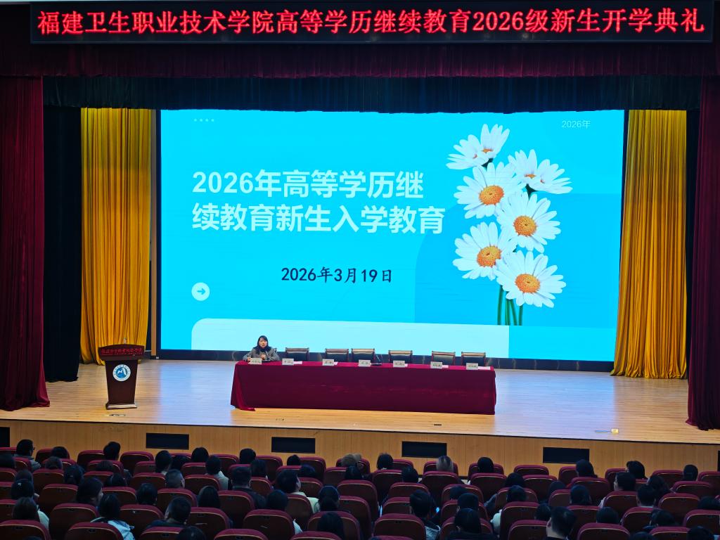 典礼伊始,继续教育学院院长何烜首先代表学校全体师生员工,向来自八闽大地的1000名新同学表示热烈的欢迎。他回顾了学校自1888年肇始至今的百余年办学历程,强调一代代闽卫人秉持“业精德诚”的校训,为我省基层医疗卫生事业培养了大批技术技能人才。他提出,在座的各位同学均是医药卫生领域的从业者,来自临床、管理、服务一线,比普通学生更懂得生命的珍贵。面对医学的日新月异,他向全体新生提出三点希望:一是处理好工学矛盾,保持学习定力,科学规划时间,做到工作学习两不误;二是注重理论联系实际,提升专业能力,带着问题学,将新知识带回岗位验证,让学习真正赋能职业成长;三是涵养医德仁心,坚守职业初心,在精进技术的同时提升人文素养,努力成为既有过硬本领、更有温度情怀的医药卫生工作者。他表示,学校将全力为大家搭建优质的学习平台,希望同学们珍惜机会,遵守规章,展现出医药卫生工作者应有的良好风貌。