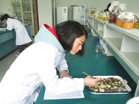 4月8日下午,中药饮片识别比赛,每批比赛由四位选手组成,分为A、B、C、D四组。每批比赛的时间为8分钟。比赛开始时选手们认真识别饮片的形状,味道,通过分析写下名称、性状、作用等。对中药熟悉的选手,能比较快而准确的识别中药,对中药不熟悉的选手则显得比较苦恼。比赛紧张而有序的进行着。最后经中药教研室老师的评判,来自12药学304班的俞爱琳同学夺得本次比赛的冠军。