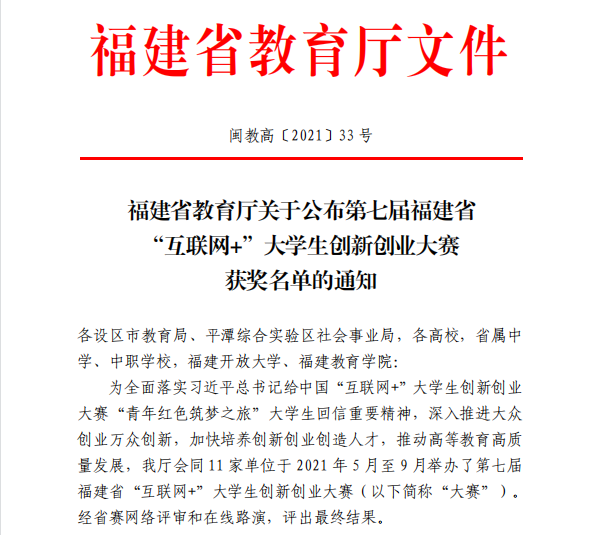2021年第七届福建省“互联网+”大学生创新创业大赛获奖项目信息