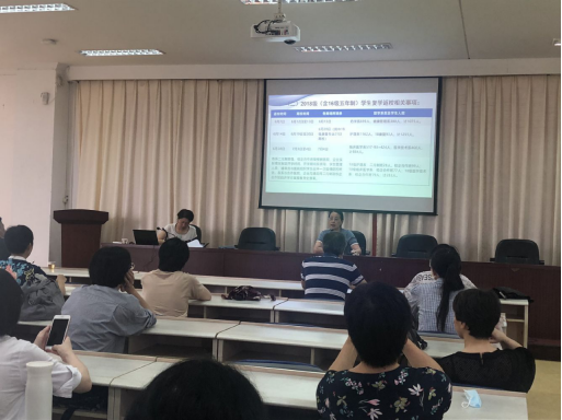 为增加学校疫情防控工作的科学性、规范性、精准性,更好保障学生返校复学运转工作有序进行,保障师生安全健康,6月4日下午,教务处在行政楼六楼会议室分两个批次为药学系和管理系的教师、实验技术人员及教学管理人员开展复学返校相关工作培训。教务处朱扶蓉处长主持此次培训会议,学院郑翠红副院长出席会议并发表讲话。