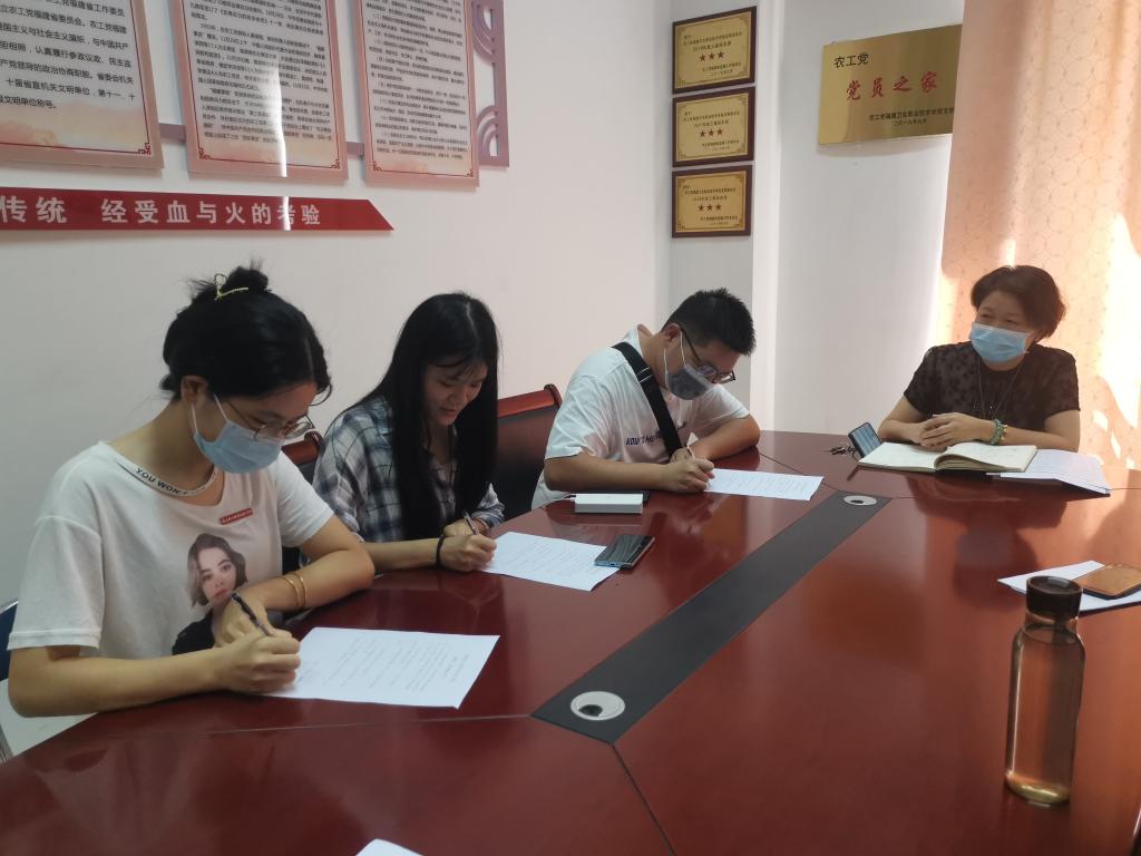教务处处长朱扶蓉对新进教职工进行吸烟有害健康的科学知识和国家对控烟工作有关的法规的宣传教育,随后组织宣誓并现场签订“教职工禁烟承诺书”。