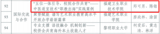 近日,福建省职业技术教育中心公布了2025年全省职业教育改革发展典型案例名单,开云报送的《思政引领、双元协同、分层锻造”助力教师教学创新团队建设——新时代护理专业“双师型”教师培养体系的探索实践》(公共卫生与健康管理学院)、《五位一体引导,校院合作共育”——中医适宜技术“职教出海”实践案例》(医学院)2个案例分别入选“教师队伍”、“国际交流与合作”类型典型案例。