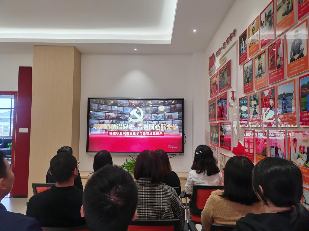 为深入学习习近平总书记关于党史学习教育的重要讲话和指示精神,坚持不懈用习近平新时代中国特色社会主义思想铸魂育人,11月17日,教务处、实习实训中心支部全体党员在行政楼五楼党员活动室集中观看福建省职业院校党史学习教育成果展。