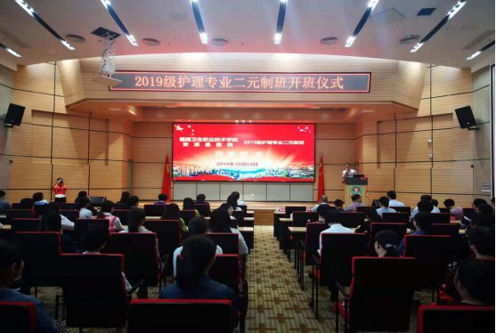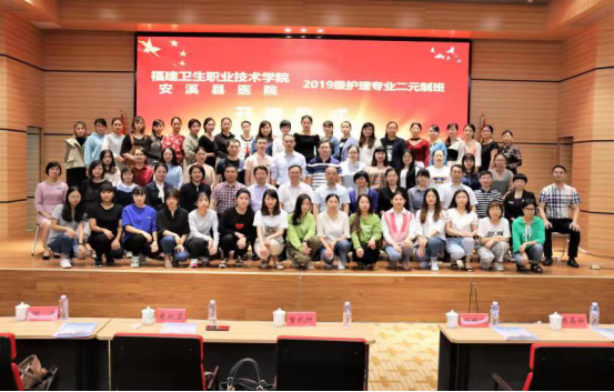 首先,学校党委书记曾武祈在开班式上致辞,对新同学们顺利入学表示祝贺,对安溪县医院给予我院“二元制”人才培养模式改革试点项目的大力支持表示衷心的感谢。随后,他详细介绍了“二元制”护理技术技能人才培养模式改革的内涵以及重要性,同时勉励被录取的学员能够珍惜此次学习机会,正确处理工学矛盾,严格遵守学院和医院各项规章制度,不怕苦不怕累,将理论与实践相结合,不断提高自身的业务能力和职业素养,更好地服务于医院的建设和发展。