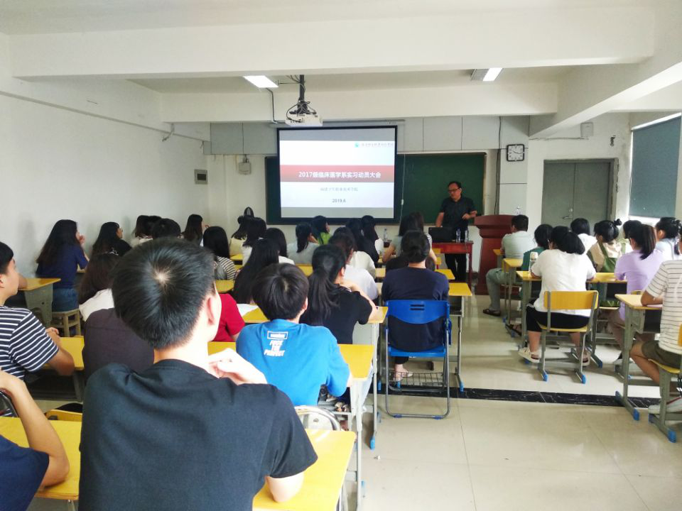 在实习动员大会上,郭礼坚主任首先向同学们介绍了实习的重要性、实习期间的纪律要求,特别强调了实习生要在实习中培养严肃认真的工作态度,杜绝差错事故的发生,要关心病患,关爱生命,希望同学们尽快调整好心态,为实习做好准备;同时,林国威主任、梁艳科长还具体介绍了临床实习的教学要求,实习成绩的评定方法等;金建文老师针对专业角度对同学们进行了动员,强调同学们要认真学习专业知识,为即将到来的实习做好充足准备,同时要注意实习中的医疗安全,学会处理好工作中的社会关系;辅导员全程玲老师现场解答了学生的实习相关问题。通过此次实习动员大会,使得即将进入临床实习的同学们对实习有了深入的了解和全面的认识,更加明确了实习的目的和重要性,相信大家一定会在实习中以饱满的热情和良好的状态完成实习任务,并收获累累硕果,为今后走上工作岗位打下坚实的基础。