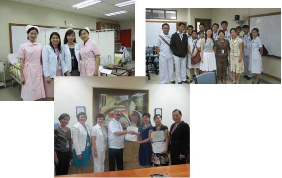 王珊珊和吴美丹两位老师赴菲律宾UERMMMCI (The University of The East Ramon Magsaysay Memorial Medical Center, INC) College Of Nursing为期两个月的学习访问。于2011年4月29日圆满完成各项任务胜利返校。王珊珊和吴美丹老师通过课堂讨论与实地考察相结合形式学习交流、增进了解。习得教学活动设计的先进经验、护理程序运用的新动态、护理研究的设计思路,并与交流单位建立起了宝贵的联系,同时也提高了语言能力。