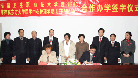 2010年1月15日,菲律宾东方大学雷蒙麦狮狮纪念医学中心护理学院院长Carmelita Divinagracia等一行三人来我院访问。Carmelita Divinagracia一行在院党委书记严肃、院长林春明等领导的陪同下,参观了学院和教学医院省立医院,详细了解了我院的基本情况及护理专业建设情况,双方就护理学专业合作办学等事宜进行了探讨,并签署了护理学专业合作办学备忘录。
