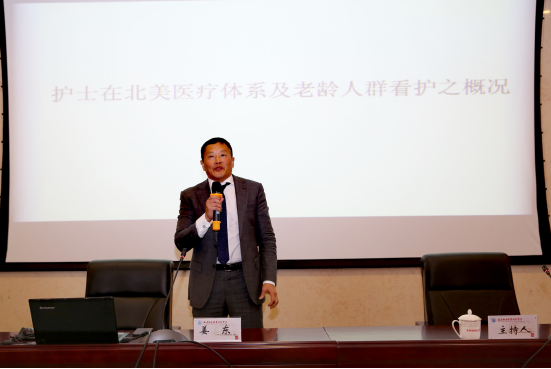 11月22日下午,加拿大资深注册护士姜东教授应邀来开云做《护士在北美医疗体系及老龄人群看护之概况》专题讲座。师生代表共220余人到场聆听,讲座由郑翠红副院长主持。