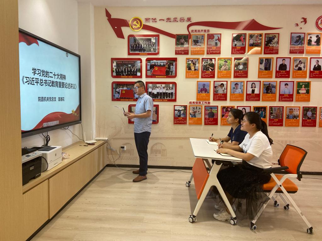 为深入开展学习贯彻习近平新时代中国特色社会主义思想主题教育,6月13日下午,科研处、科技服务中心党支部举办学习《习近平总书记教育重要论述讲义》专题党课,本次党课由支部书记匡德花同志主讲。