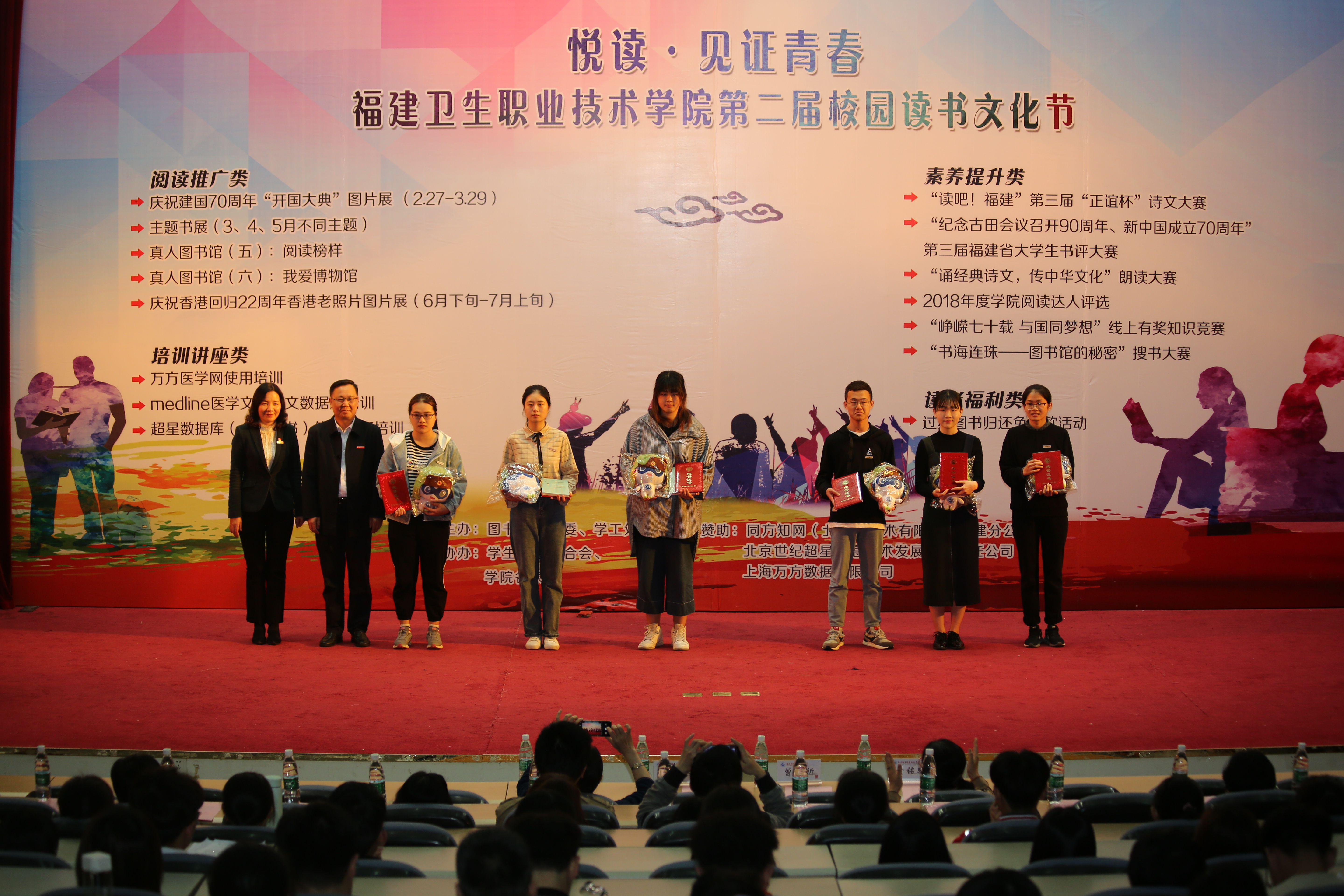 2019年4月11日下午2点,由图书馆、团委、学工处主办,学生社团联合会、学院各系部协办的第二届校园读书文化节启动仪式在学术厅举行。学院党委书记曾武祈、纪委书记李美华、副院长黄铭珊、副院长郑翠红、各主办协办单位相关负责人和特邀图书捐赠代表出席了本次活动,五个系部学生代表240余人参加了活动。