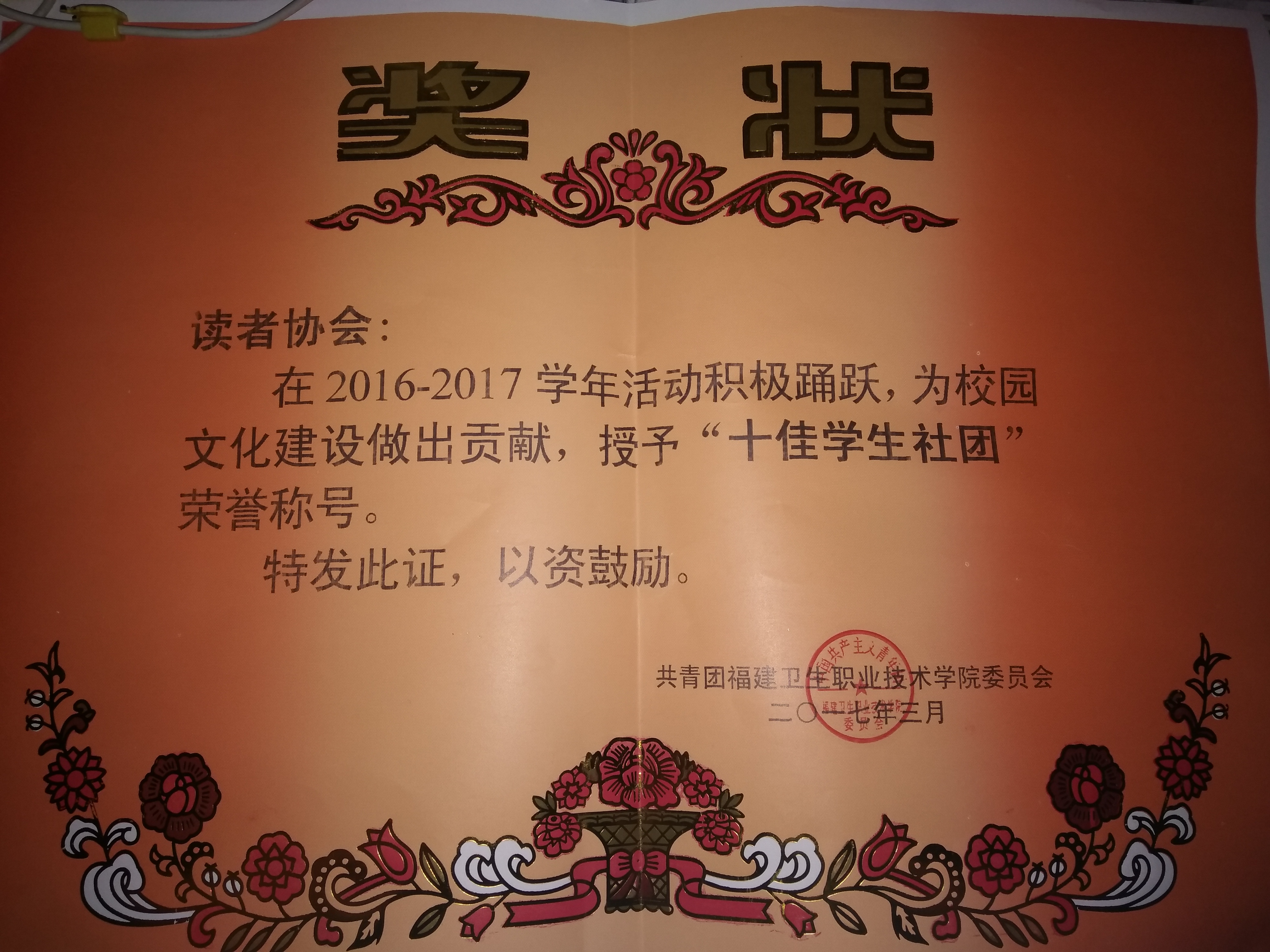 由图书馆教师指导的读者协会,在2016-2017学年活动积极踊跃,为校园文化建设作出贡献,被学院团委评为“十佳学生社团”、“十佳社团社长”。特此祝贺!