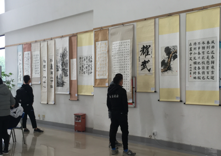 在比赛进行的同时,往届书画大赛的优秀作品近百幅也在图书馆一楼大厅展出。参展作品题材广泛,包括软笔、硬笔、国画、水粉、素描,内容包括唐诗宋词、传统谚语、名言警句等,彰显出当代大学生深厚的传统文化底蕴,为我院校园增添了一抹浓重的古韵书画风。本次书画展将在图书馆持续展出至2018年1月10日,欢迎校内师生前来鉴赏。