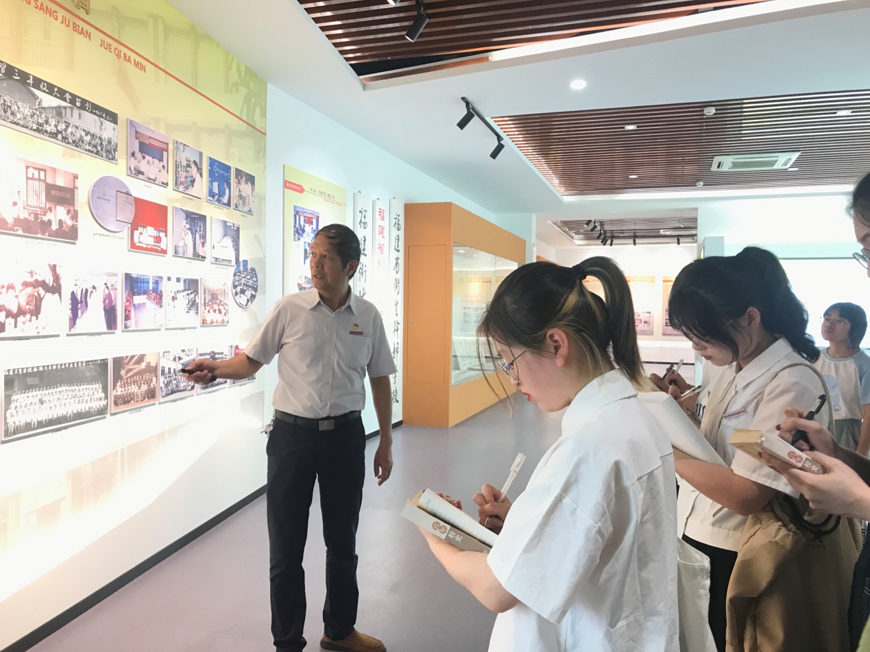学生讲解员认真聆听并记笔记