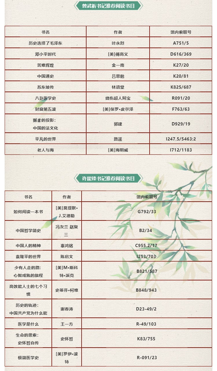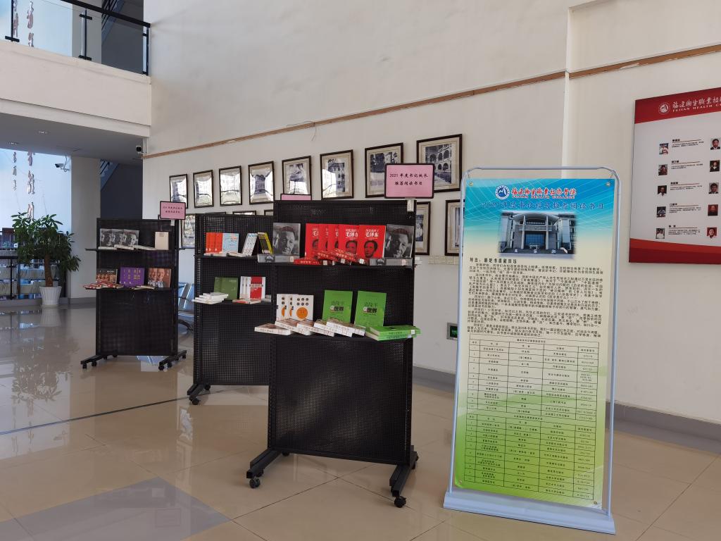 图书馆举办2021年度书记校长推荐阅读书目主题书展,该书展设立于图书馆一楼大厅,欢迎广大师生前来取阅。