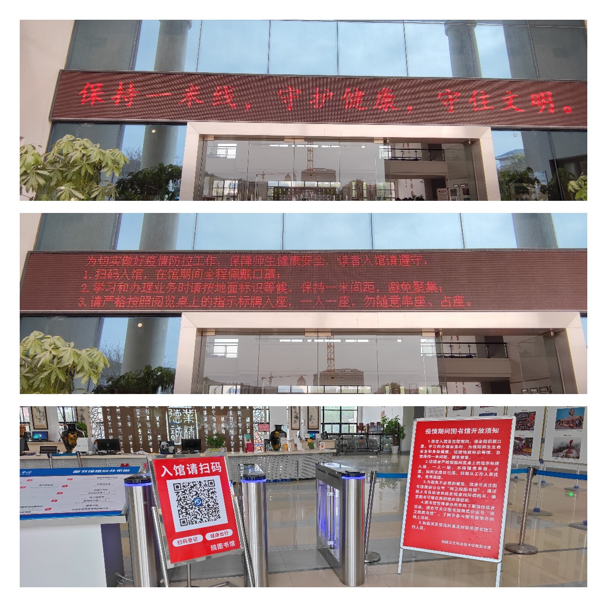LED屏、引导牌宣传防疫知识和入馆要求