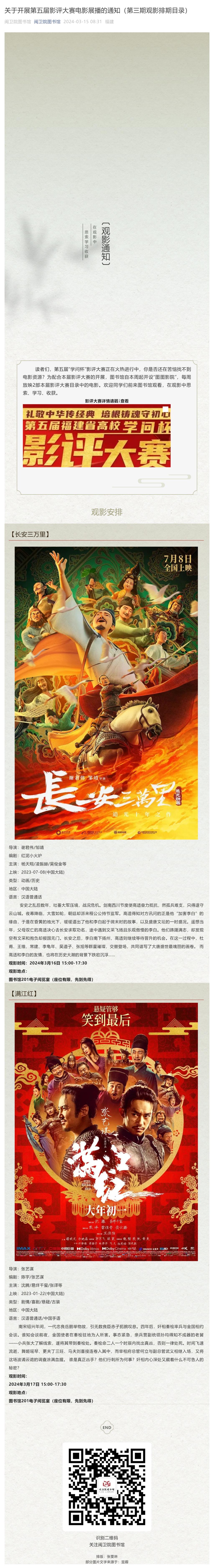 关于开展第五届影评大赛电影展播的通知(第三期观影排期目录)