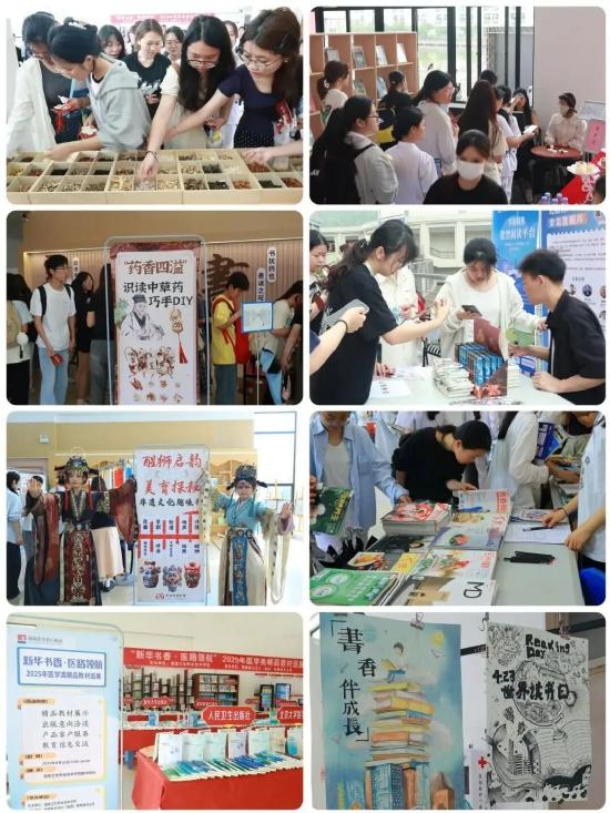 图书馆在一楼大厅同时开启第 30 个世界读书日游园会,涵盖医学类精品教材巡展、阅读空间美化活动成果展、纸质图书读者荐购、数字资源推广、非遗文化趣味问答、中草药科普与手工挂饰制作等。这场精心筹备的文化盛宴将阅读与游戏巧妙融合。现场笑语盈盈,师生们在沉浸式体验中感受阅读魅力,在互动交流中碰撞思想火花。