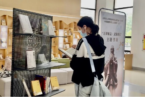 戏剧展播结束后,同学们前往图书馆一楼大厅借阅相关图书。