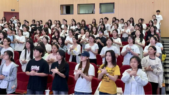 活动接近尾声,由主持人领读《论语》中的原著金句,并现场教学剧中出现的礼仪手势——“叉手礼”,让同学们体会到传统文化的魅力,也更加加深了对孔子这位“至圣先师”的理解。