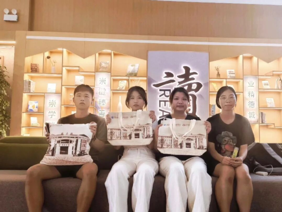 抽中图书馆文创纪念品的幸运捐书人合影留念