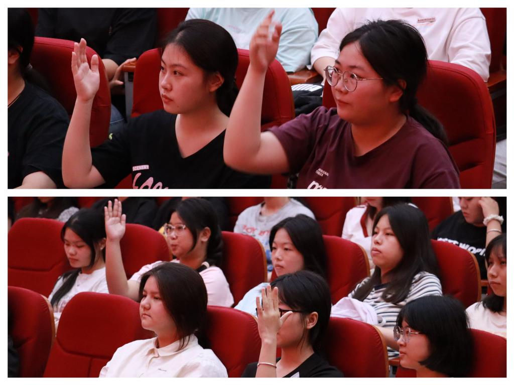 为了加深大家对本期谍战题材舞剧《永不消逝的电波》的理解,传承红色基因,弘扬爱国主义精神。活动从展播节目中选取了几个有关的知识点,设置了问答环节,增强与观众的互动,调动现场气氛。同学们积极举手参与,侃侃而谈。答对的同学获得了图书馆精心准备的文创纪念品。