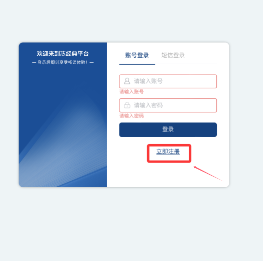 第二步:点击【立即注册】-填写【手机号】获取验证码登录/注册。