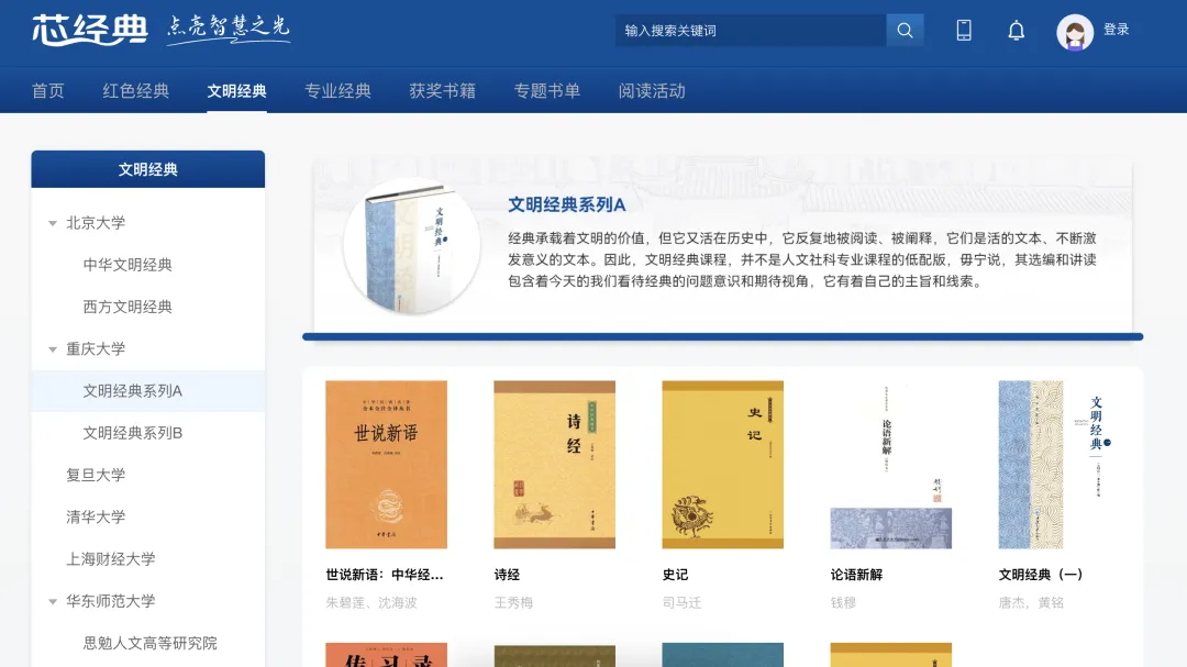 平台整合红色经典、文明经典、专业经典等多维度优秀资源,构建全方位、多层次的经典阅读与学习体系。