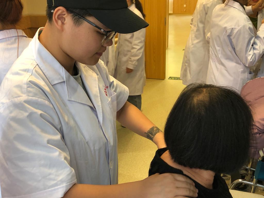 在上渡居家养老服务中心义诊现场,党员们各司其职,用专业的知识认真地为前来咨询的居民测量血压、疾病科普及就医指导;结合详细的问诊、体格检查及患者的检查报告,用娴熟的技能为就诊患者提供针灸、拔罐、推拿等服务。参与此次活动的学生入党积极分子积极热情,在安全范围内,充分发挥专业知识,体现人文关怀,为现场居民提供有效的志愿服务。