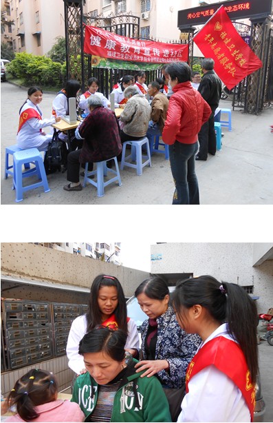 在临床医学系郑向红主任的带领下,来自临床医学系、护理系、医学技术系、药学系的15名同学组成的学院专业技能应用团队,利用周末休息时间,来到福州市台江区祥坂社区,与社区居委会联合为社区居民开展健康教育宣传活动。志愿者们充分发挥自己的专业技能专长,免费为社区居民进行测量血压以及实施保健按摩、推拿、拔罐等医疗保健服务,同时向居民们宣传普及健康生活常识,耐心回答各种健康方面的咨询。