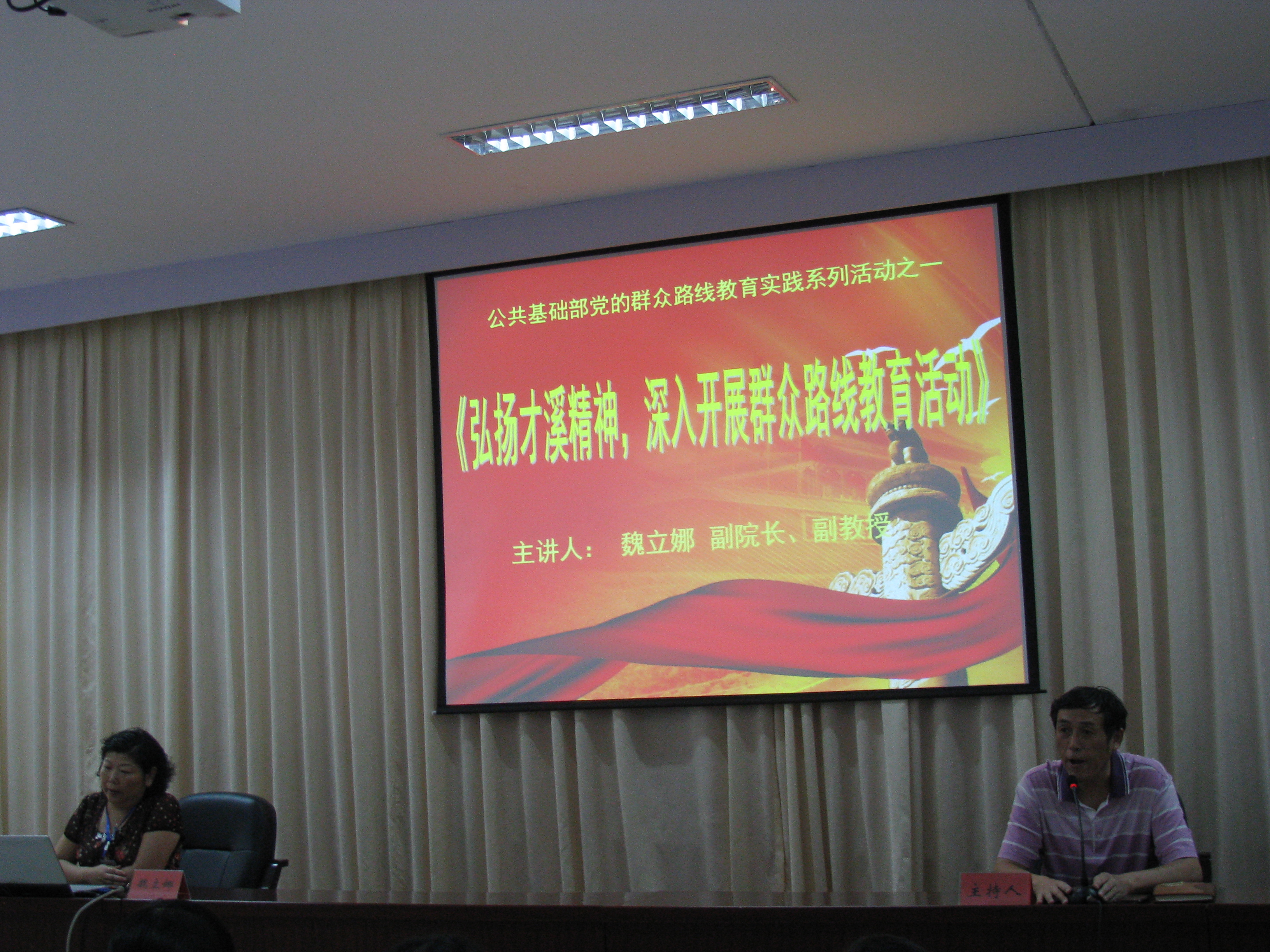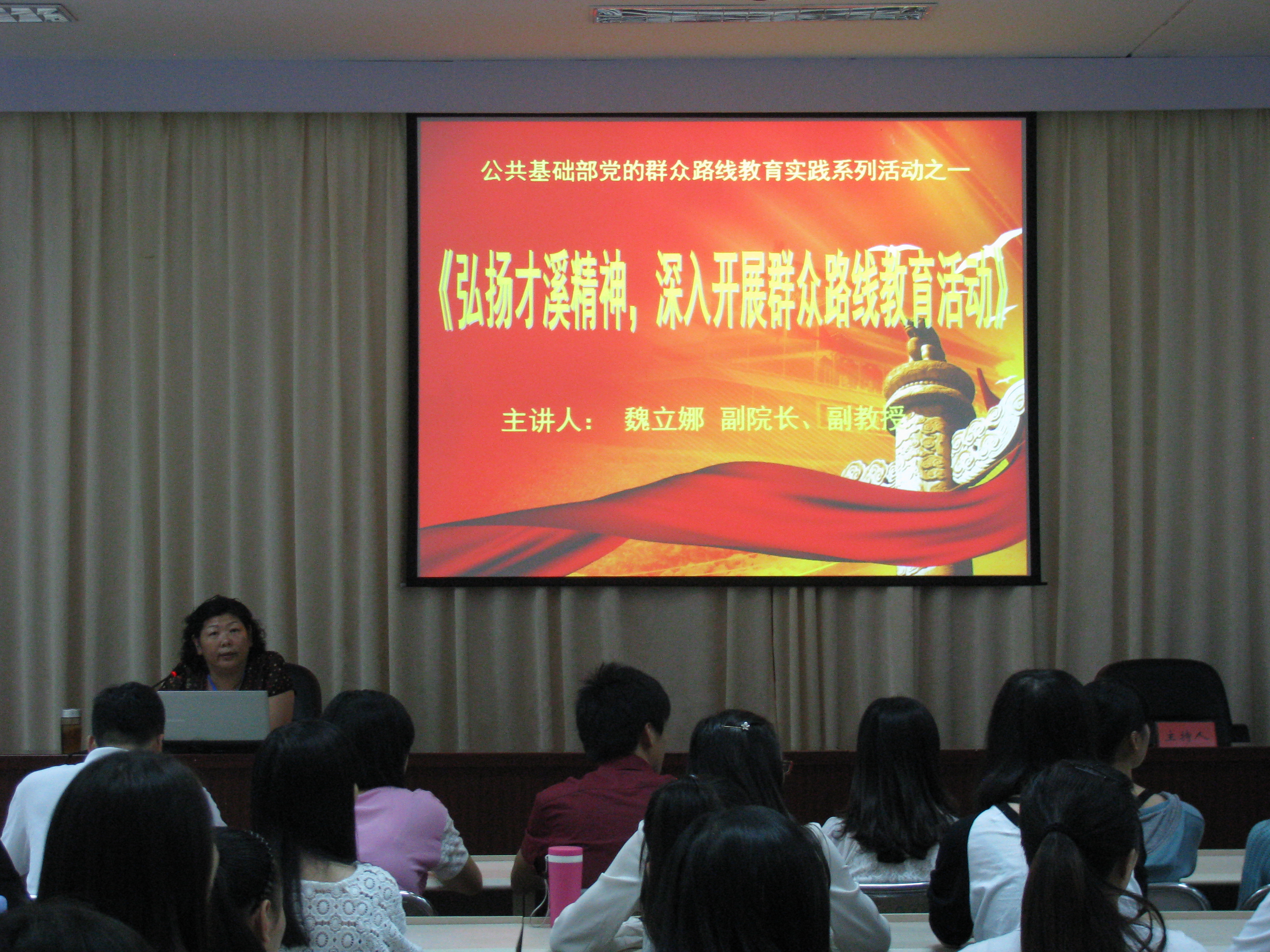 深入开展群众路线”为主题的讲座。系部洪聿荣书记,思政教研部各位老师以及