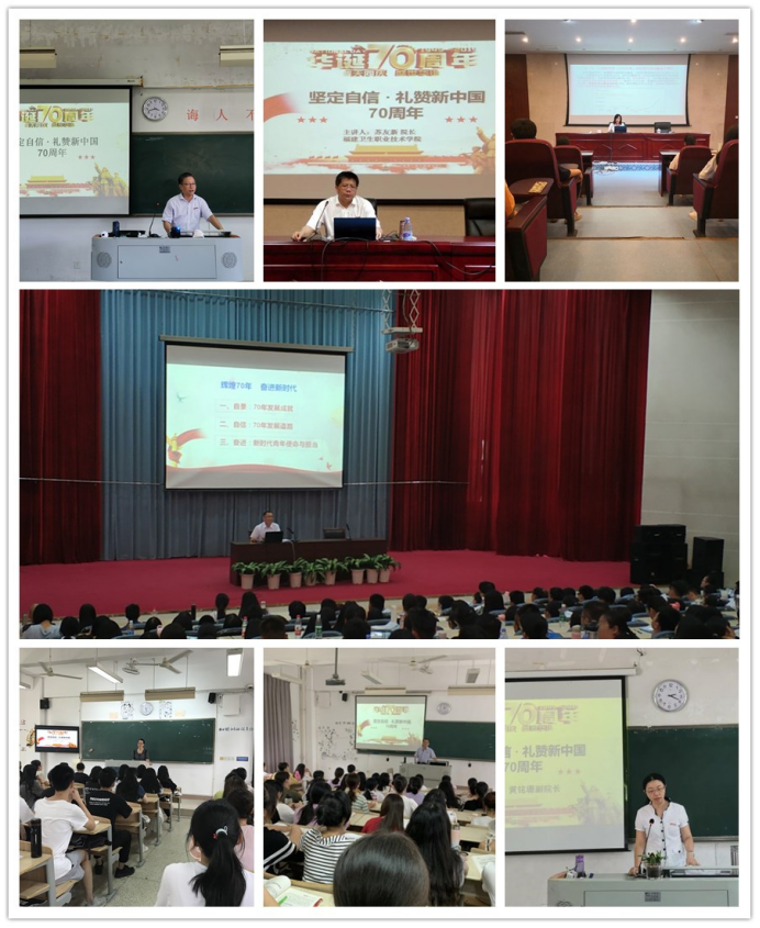 为庆祝新中国成立70周年,进一步贯彻落实习近平总书记系列重要讲话精神,做好高校思想政治工作,切实提高思政课教育教学效果,进一步凝聚和激发青年大学生的爱国热忱,增强大学生的获得感、幸福感和时代责任感,在马克思主义学院的统筹安排下,在新学年的开学第一周,9月5日至12日,开云在线登录app入口党委曾武祈书记、苏友新院长、李美华副书记、游峰纪委书记、陈贞健副院长、黄铭珊副院长和郑翠红副院长等所有校领导纷纷走上讲台,为全校各系新老生讲授以《坚定自信·礼赞新中国七十年》为主题的形势与政策开学第一课。