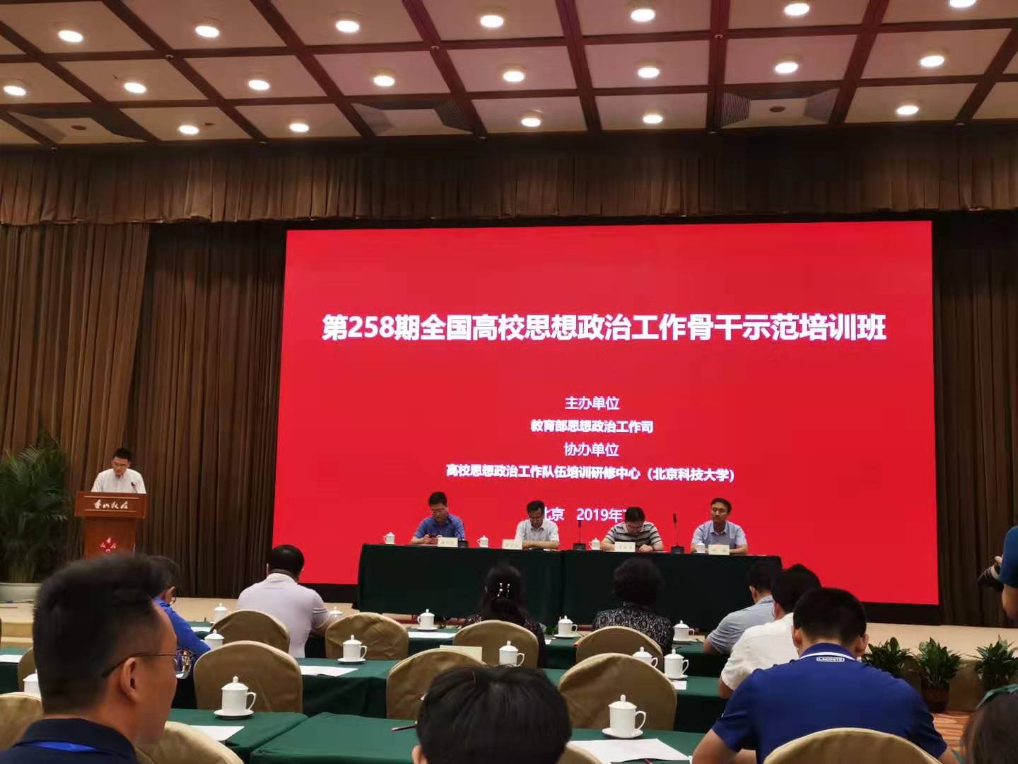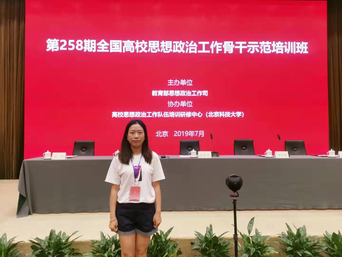 在全党深入开展“不忘初心、牢记使命”主题教育,全国教育系统深入学习贯彻习近平总书记关于教育的重要论述之际,根据2019年度全国高校思想政治工作骨干示范培训班统一计划安排,教育部思想政治工作司于7月9日—12日在京举办第258期全国高校思想政治工作骨干示范培训班,近百位来自全国各地的高校思想政治工作干部教师集中学习领会习近平新时代中国特色社会主义思想,围绕“社会思潮对高校师生思想素质形成的影响研究”培训主题进行深入研修。马克思主义学院杨盈老师参加了此次培训班。