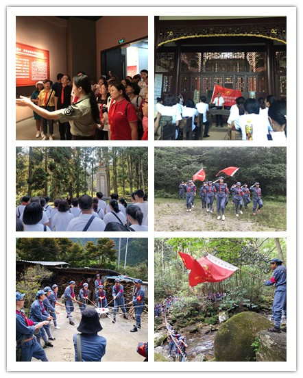 8月4日,在荆竹山,通过重走红军路、深入群众家中做工作,向群众借粮食、做午餐、做好事、进行革命思想宣传等素质拓展,强化团队精神,体悟革命艰辛,深知幸福生活来之不易。8月5日,通过走访茨坪毛泽东旧居,学习“工农武装割据”的光辉思想;在井冈山革命烈士陵园,聆听了革命烈士事迹、缅怀革命英烈的丰功伟绩、学习井冈山英烈们忠于理想、无私奉献的精神;下午,我们来到了大井朱毛旧居,学习毛泽东勤于学习、勇于探索的理论品质。在小井红军医院,学习红军战士不怕牺牲、战胜困难的意志,通过小井红军烈士墓的现场教学,老师们被讲解员的深情演说,以及现场敬献小白花等环节深深地感动,许多老师都流下了深情的泪水。8月6日,在井冈山革命博物馆,学习井冈山革命史和革命任务先进事迹。下午大家一同来到著名的黄洋界哨口,学习井冈山斗争时期以少胜多的典型战争,思考探索发动群众、依靠群众、团结群众的工作方法。随后,大家纷纷踏上朱毛红军挑粮小道,体验当年官兵同甘共苦、革命理想高于天的精神。期间,还与井冈山革命英烈后代袁建芳、石草龙等人进行了访谈式教学,学习红歌等等。通过现场感受当年毛主席、朱总司令领导井冈山斗争的情景,军民融合的情谊,重温光辉历史。