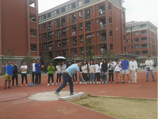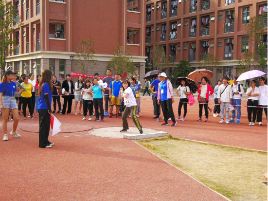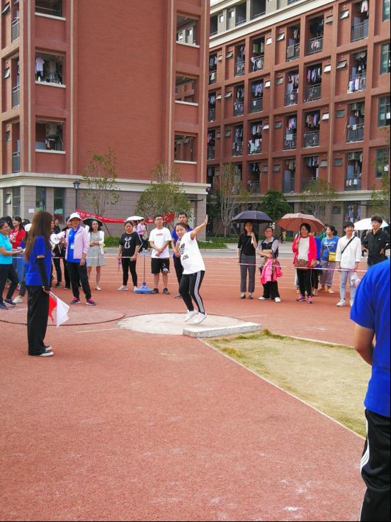 熊美兰院长、张崇飞老师、林美辰老师参加铅球项目的比赛