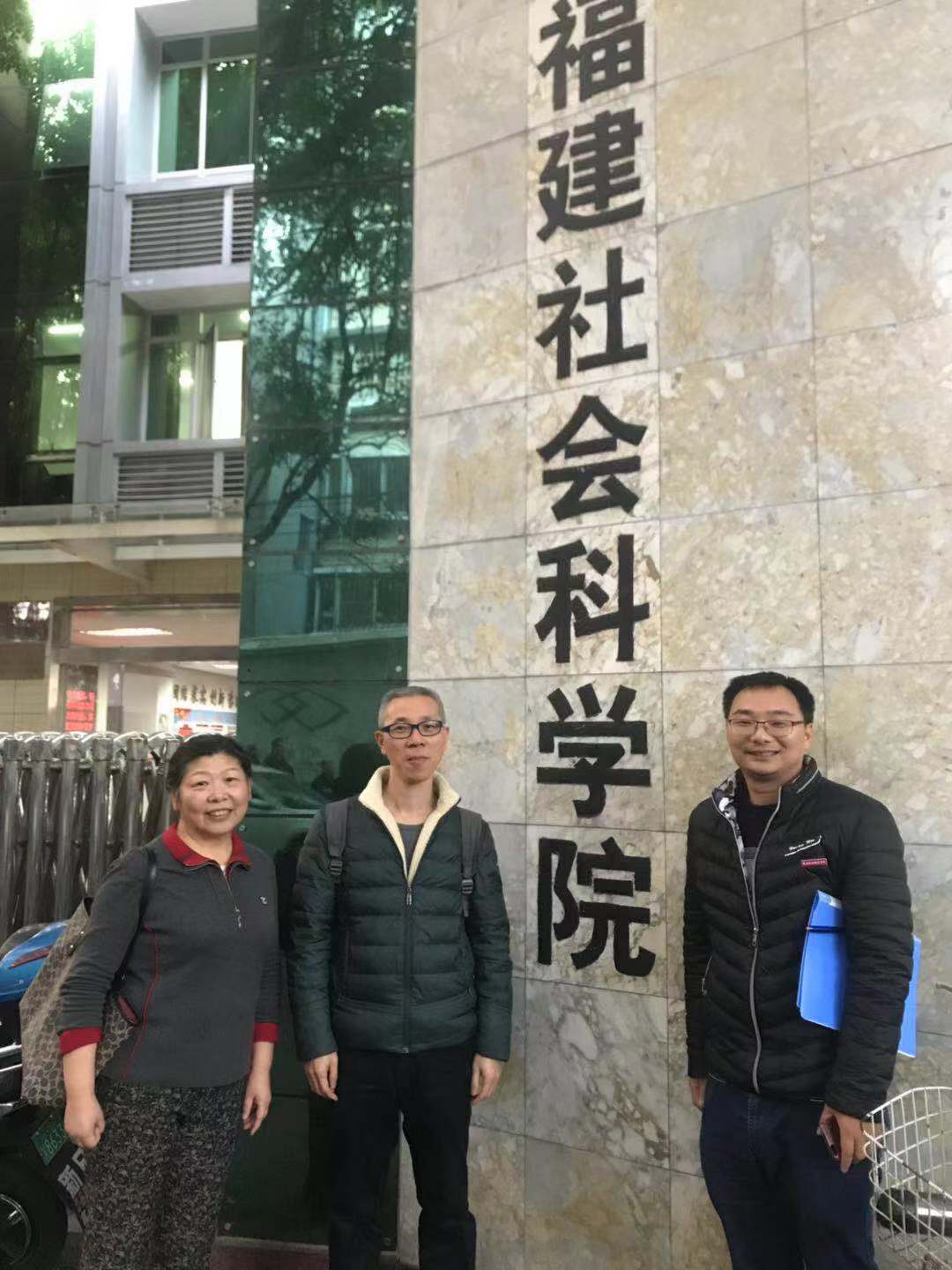 为了更好地开展我院教师承担的省中特研究中心的课题,2020年1月3日下午,马克思主义名誉院长魏立娜教授、概论教研室主任胡济林副教授、张崇飞老师一行三人前往福建社会科学院调研,受到福建社会科学院现代台湾研究所副所长、研究员苏美祥的热情接待。