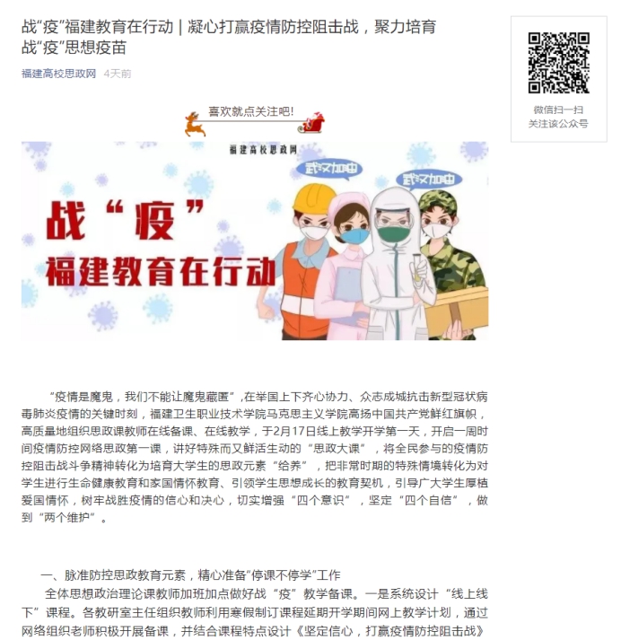 (福建思政网2020年2月25日链接:https://mp.weixin.qq.com/s?__biz=MzU2OTY0NjQxMw==&mid=2247492391&idx=3&sn=b75a97cef660c7b68cbf5db9538d0f29&chksm=fcf92f05cb8ea6136cd94a2586e2fb5f23ecef2721761f34a5258ea15b473bf4ac6d920776c9&mpshare=1&scene=23&srcid=&sharer_sharetime=1582770194468&sharer_shareid=5022b025b2c302b450da77315e7601c5#rd)