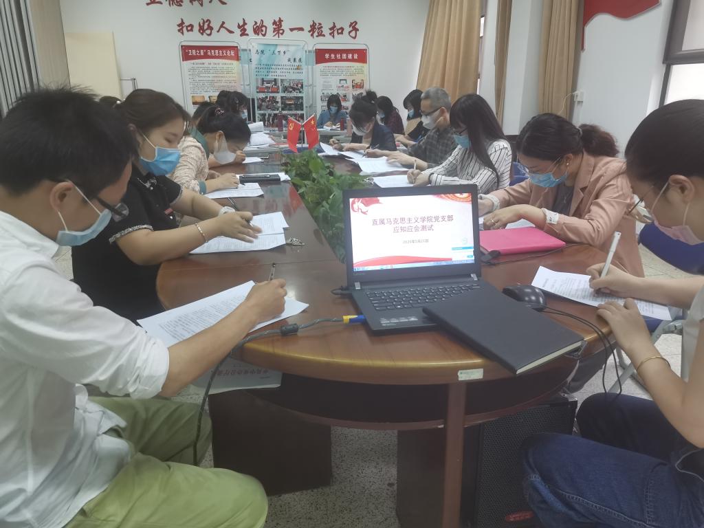 下午,集中召开马院大会。首先,全体教师进行党支部应知应会测试。