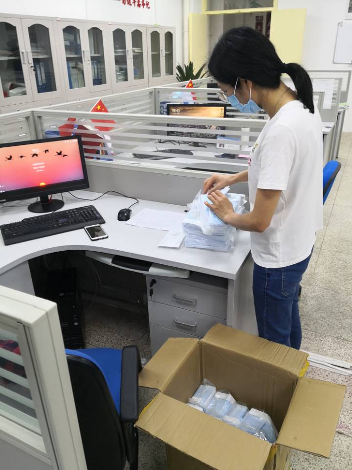 行政突击队清点并发放防疫物资。