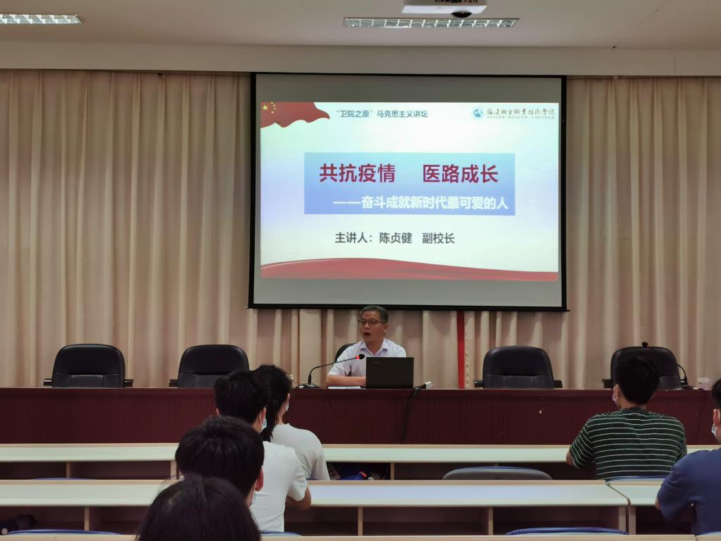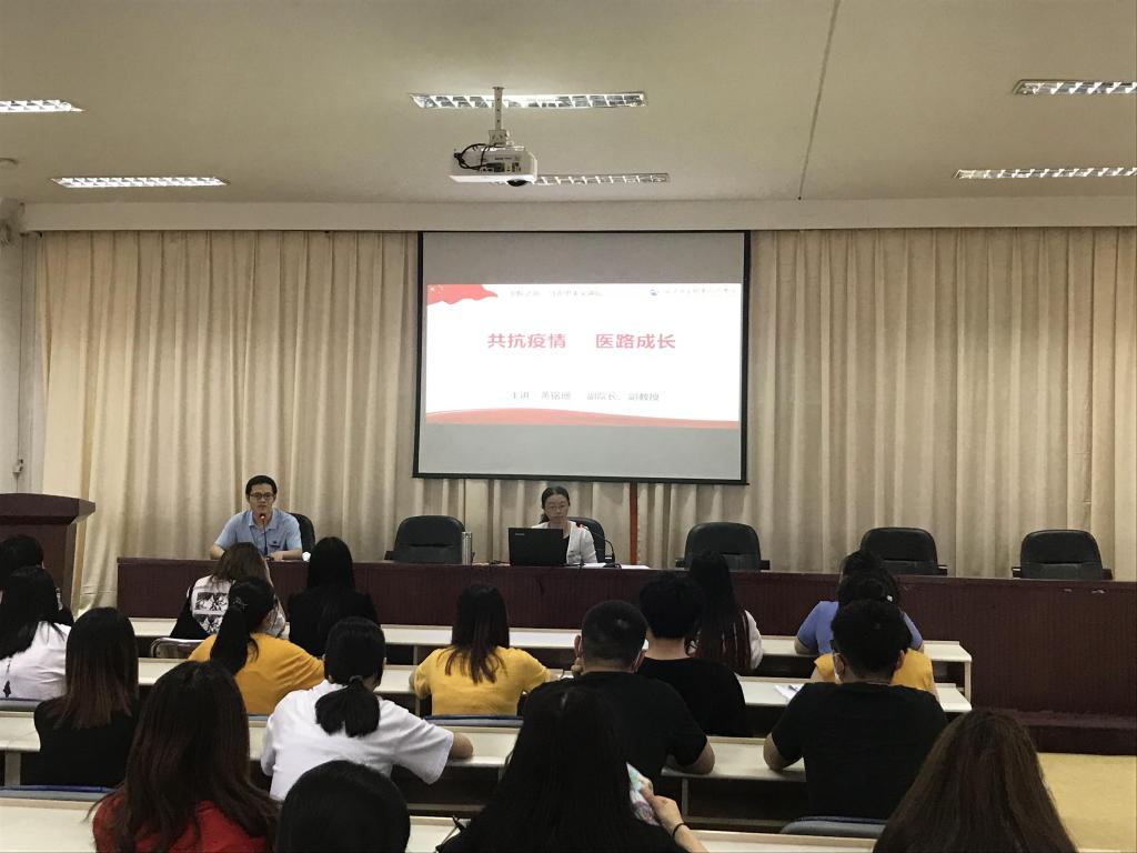 2020年6月11日、6月18日、7月2日我院党委书记曾武祈、党委副书记李美华、纪委书记游锋、副校长陈贞健、副校长黄铭珊、副校长郑翠红等校领导以“共抗疫情,医路成长——奋斗成就新时代”为主题纷纷走上讲台,分别为陆续返校的大二学生,精彩奉献返校思政战“疫”课,将新冠肺炎疫情防控生动感人的实践转化为鲜活有力的思政育人元素,引导卫院学子以青春奋斗担当精神,坚定理想信念,站稳人民立场,练就过硬本领,投身强国伟业。各系等返校学生,党政领导干部、思政课教师和辅导员也齐聚课堂聆听,未返校的学生也通过钉钉课堂、腾讯会议等网上平台在线观看学习,开展线上交流和讨论。