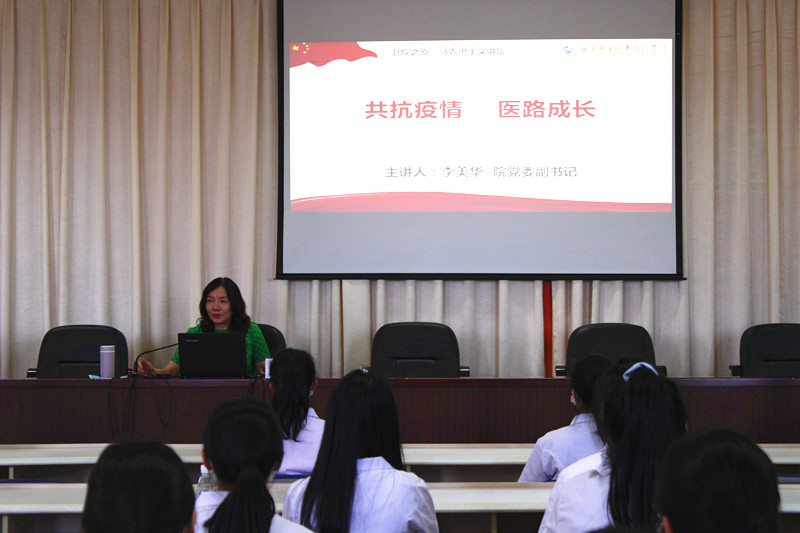 李美华副书记指出,14亿多中国人民坚韧奉献、守望相助,凝聚抗击疫情的强大力量,谱写了一曲曲“众志成城、共克时艰”的战“疫”之歌,勉励学子们将爱国主义、无私奉献、团结奋斗的精神熔铸为思想底色,以最美逆行白衣天使为榜样,紧紧抓住医药卫生行业发展契机,提高思想政治觉悟、增强责任担当意识和团结奋斗精神,立报国志、怀报国心、强报国行,扎扎实实把自己锤炼成仁心仁术的精诚大医,致力成为新时代最可爱的人。