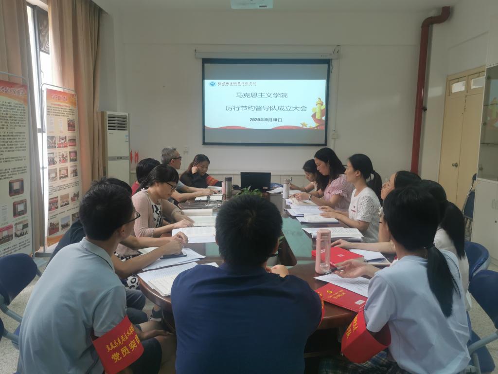 为贯彻落实习近平总书记作出的“坚决制止餐饮浪费行为切实培养节约习惯,在全社会营造浪费可耻节约为荣的氛围”重要指示精神,坚决遏制“舌尖上的浪费”,养成勤俭节约的习惯,营造健康文明的社会风尚,马克思主义学院决定成立厉行节约督导队。
